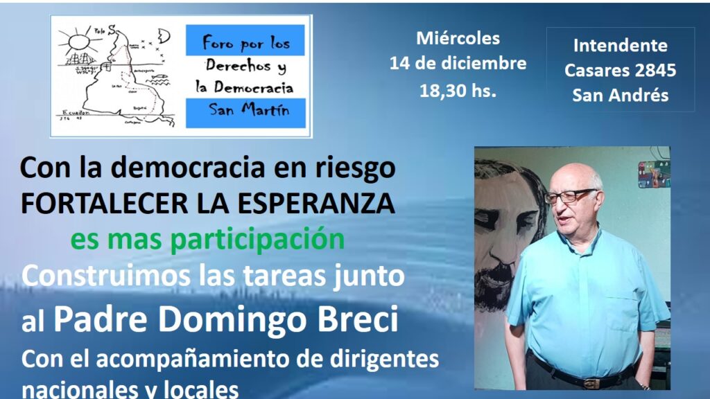 Convocatoria del Foro por los Derechos y la Democracia, de San Martín Publicado en 7 diciembre 20227 diciembre 2022por Tesis 11 Compartir:Imprimir