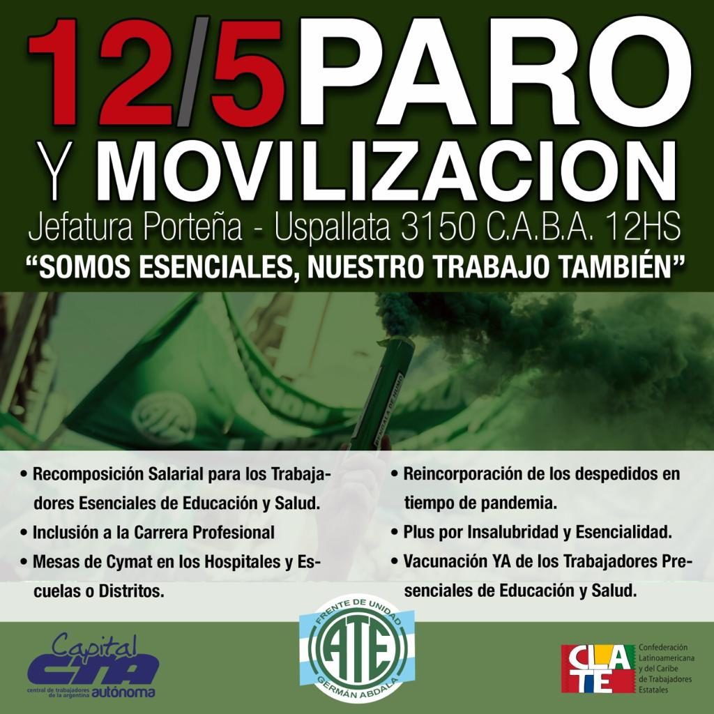 CTA Autónoma: 12/05/2021 paro y movilización Publicado en 12 mayo 202112 mayo 2021por Tesis 11 Compartir:Imprimir Comunicado de la CTA Autónoma:
