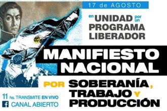 El 17 de agosto a las 11 horas se realizará un acto en Plaza San Martín (Retiro) en el cual se presentará un nuevo documento del Manifiesto Nacional por la Soberanía, el Trabajo y la Producción. Estarán presentes sólo dirigentes de la CTA Autónoma, UTEP, La Cámpora, Sindicato del Cuero y Federación Gráfica Bonaerense (CGT) – Movimiento Nacional de Empresas […]
